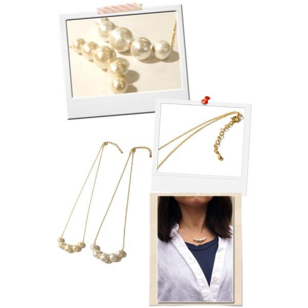 5粒のコットンパールを使用しているので、エレガントに使用できます。チェーンのカラーとコットンパールのサイズと選べて自分の好みに合わせられます。アジャスターが付いているので、5cm長くすることが可能です。当店のコットンパールは国産です。メール便OK!