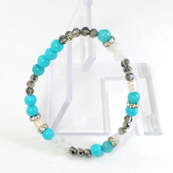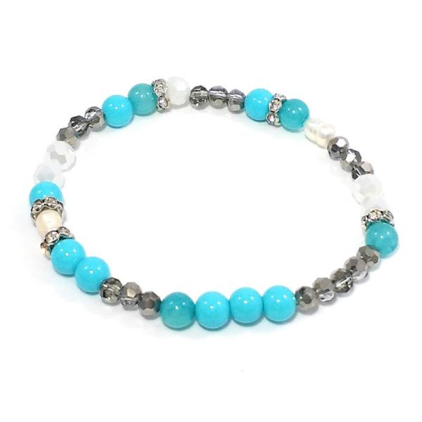 パワーストーン (天然石) ブレスレット 【 クォーツ ・ マグネサイト ・ 淡水パール 】 レディース PS-BT002