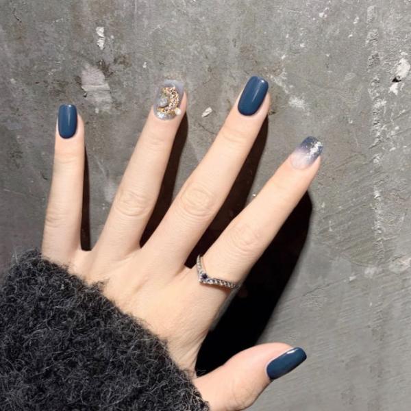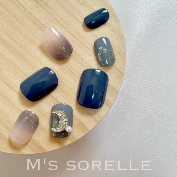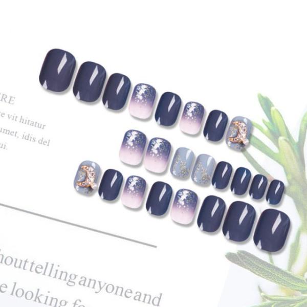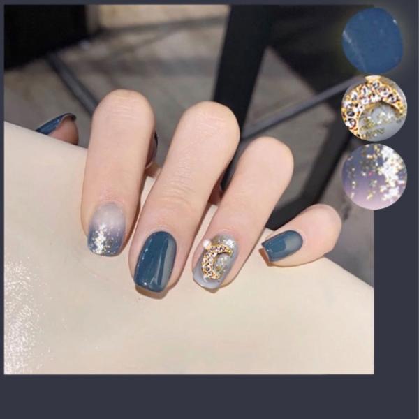ネイルチップ ショート 韓国 ネイルチップ 成人式 可愛い ラウンド かっこいい 紺 ネイビー 青 セーラームーン 振袖 短め 短い 和柄 和装 秋 日常 付け爪