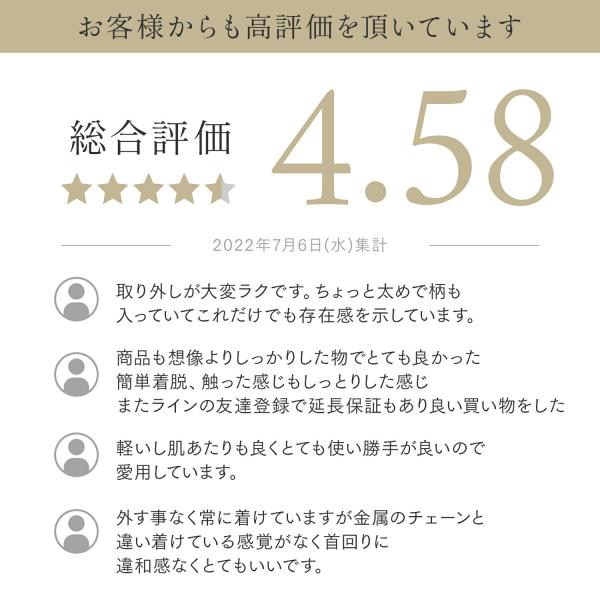 金具はサージカルステンレス製ですのでサビや汚れの心配不要、アレルギーを起こしにくい素材ですので敏感肌の方でも安心してお使いいただけます。