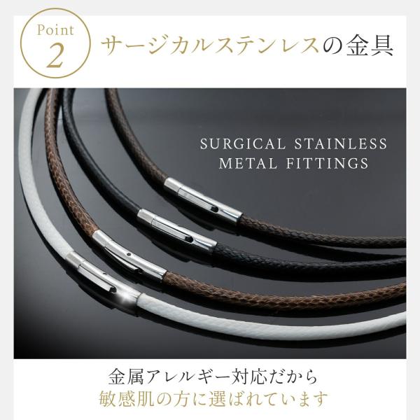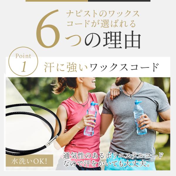 紐:ポリエステル、蝋・留め具:316Lサージカルステンレス