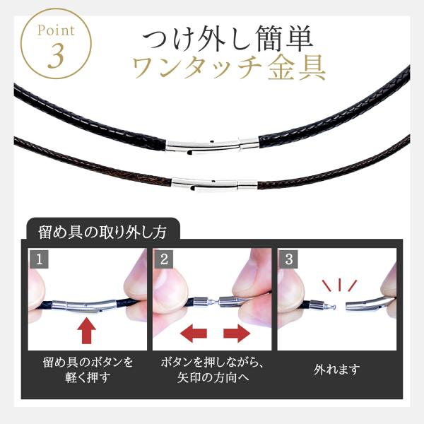太さ:紐3mm/ 長さ:40cm 〜55cm/ 留め具太さ:約4mm