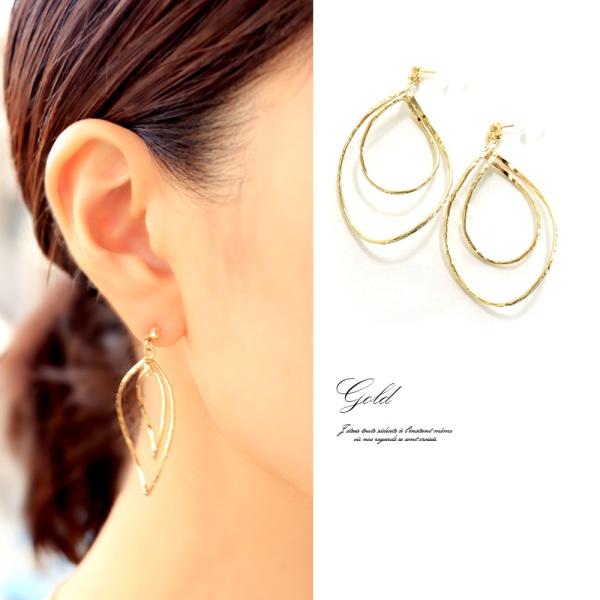 耳元で煌めくフープの重なりが素敵なピアスです。