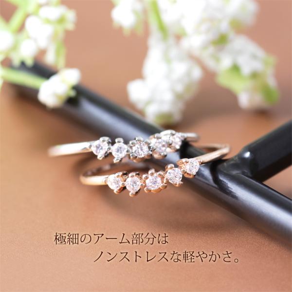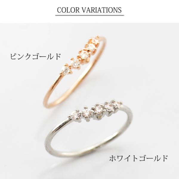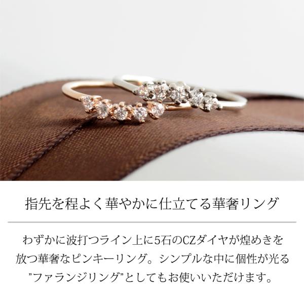 わずかに波打つライン上に、5石のCZダイヤが煌めきを放つ華奢なピンキーリング。