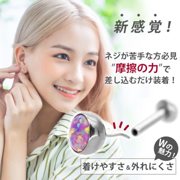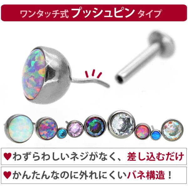 商品名:ボディ ピアス プッシュピン 軟骨 つけっぱなし 16G 18G 20G ラブレット トラガス ベゼルジュエル&シンセティックオパール body pierce