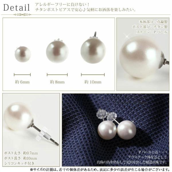 ピアス レディース パール 一粒 アレルギー対応 チタン 大粒 6mm 8mm 10mm ポイント消化 ホワイトデー ギフト 女性 ホワイトデー