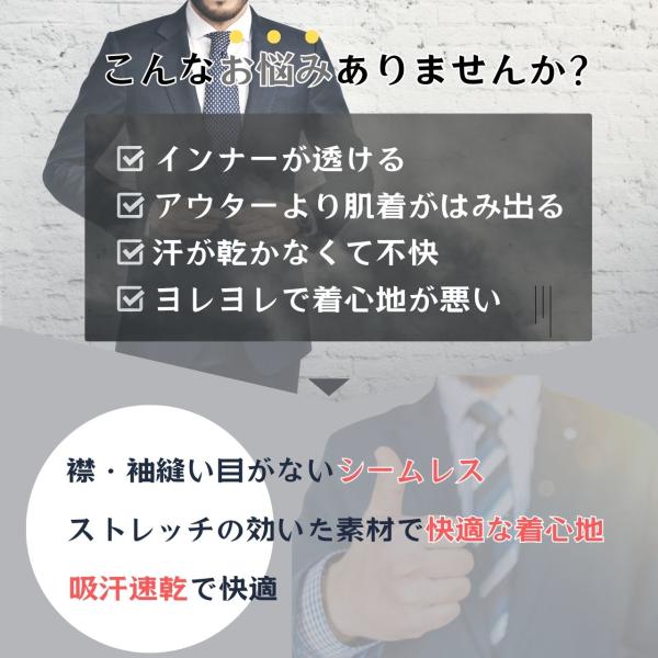 洗練されたVネックラインは、首元を美しく演出しつつ、肌着の透けを防ぎます。そのため、スーツのYシャツとの組み合わせにも完璧にマッチし、ビジネスシーンでも活躍します。