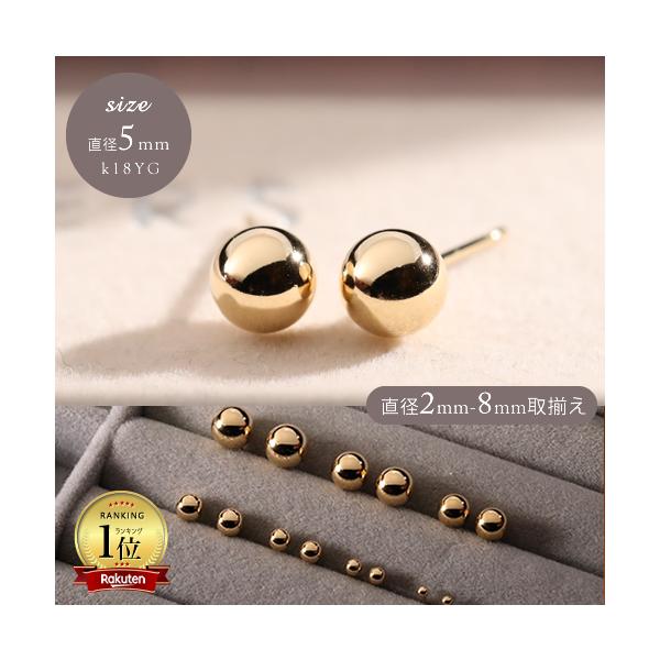 K18 5mm 丸玉ピアス セカンドピアス 職場 ピアス オフィスカジュアル (18金、18k、ゴールド製) 上品 フォーマル パーティー 痛くない 誕生日プレゼント 女性 結