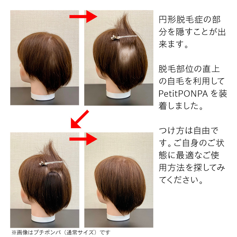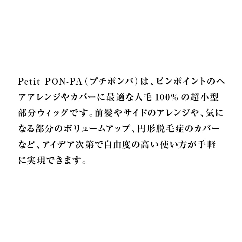 部分 ウィッグ 人毛 100% 自然 医療用 円形脱毛症 隠す ショート 男性 女性 ポイントウィッグ プチポンパ Petit PON-PA ブラック ブラウン