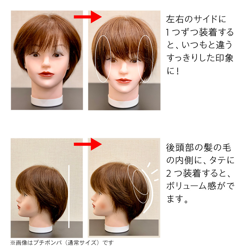 円形脱毛を隠したり、小さな部分のボリュームアップや