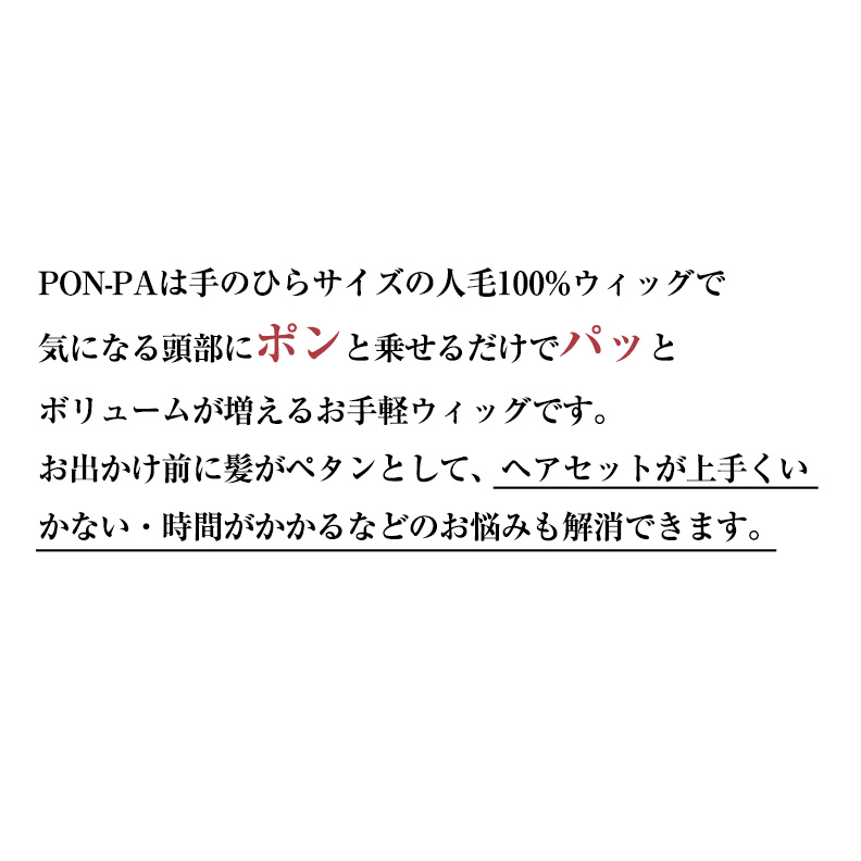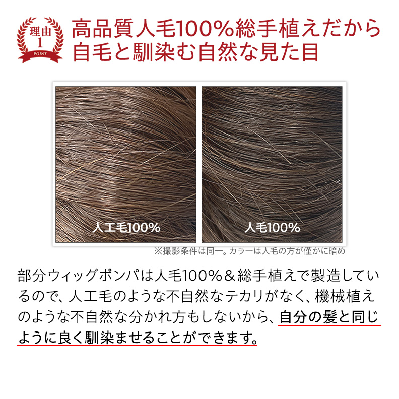部分ウィッグ 頭頂部 人毛 100% 自然 トップピース 女性 ショート ミディアム つむじ 分け目 総手植え かつら ポンパ PON-PA