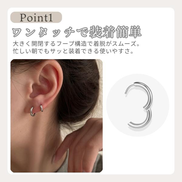 ピアス ステンレス フープ 両耳 2個セット 金属アレルギー対応 つけっぱなしピアス セカンドピアス ファーストピアス リングピアス シンプル