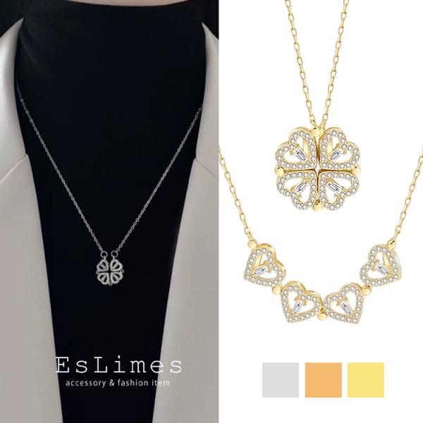 ネックレス レディース 四つ葉のクローバー お花 2way ステンレス 贅沢 18KGP シルバー ゴールド 女性 誕生日お祝い プレゼント ギフト 爆買