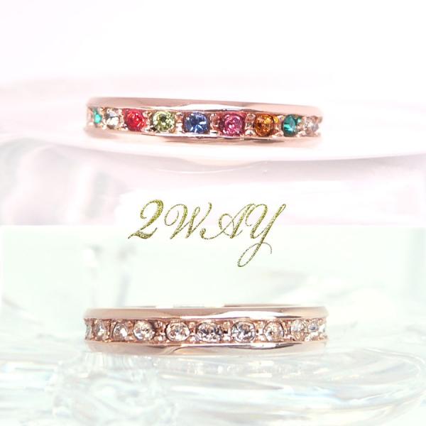 エタニティリング アミュレット マルチカラー 指輪 ピンクゴールド 1〜12月の誕生石カラー 高品質クリスタル ピンキーリング 2WAY 2〜21号