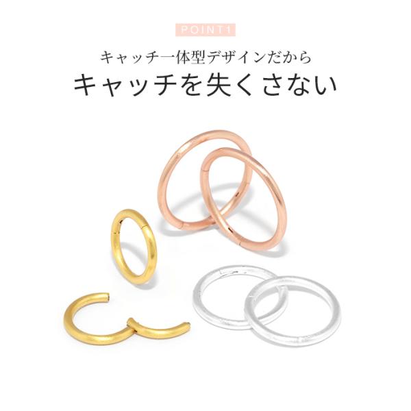 【両耳用・2個売り】 ピアスリング セグメント ピアス 小さめ 金属アレルギー対応 フープ マット シンプル ワンタッチ リング セグメント クリッカー ループ メンズ 耳たぶ 厚い ch-136-2