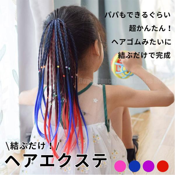 キッズダンス衣装 ヘアエクステ ヘアエク ガールズ ヒップホップ 発表会 レッド ブルー ピンク パープル 赤 紫 青 かわいい おしゃれ