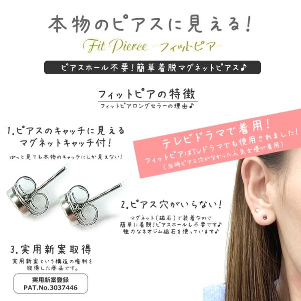 穴を空けないピアス マグネットピアスとは、磁石の力でくっつく、本物のピアスに見えるピアスです。留め具部分までピアスそっくり。