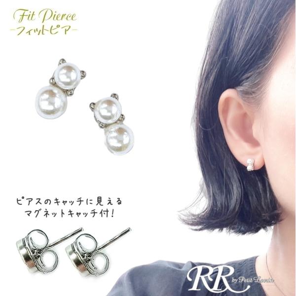 マグネットピアス パール フィットピア 2連 ダブルパール ノンホールピアス 痛くない ピアスに見える イヤリング 磁石 冠婚葬祭 卒業式 入学式 レディース