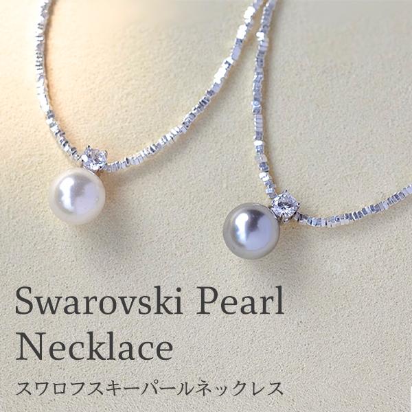 スワロフスキー 真珠 パール ネックレス925純銀製 送料無料