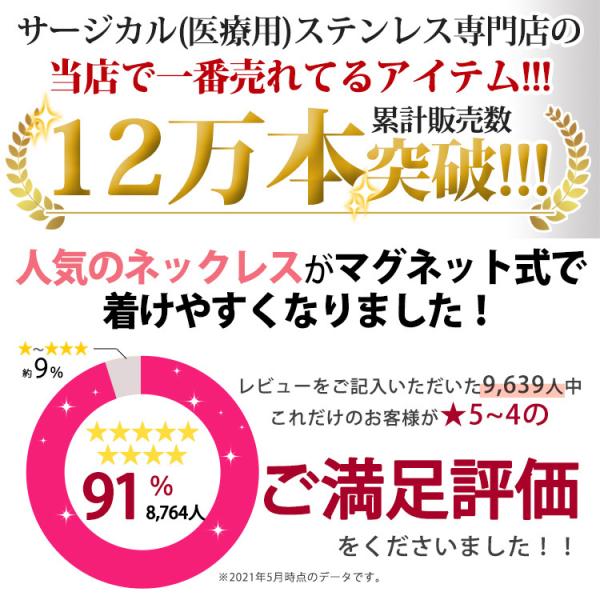 ネックレス チェーン つけっぱなしサージカルステンレス レディース 金属アレルギー対応 長さ 45cm 50cm 55cm 磁石 マグネット アジャスター付 小豆 316l
