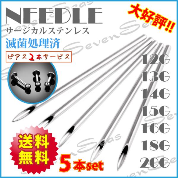 送料無料 激安5本セット ピアス2個プレゼント ニードル 18G 16G 14G 12G 18ゲージ 16ゲージ 14ゲージ 12ゲージ サージカルステンレス316L 手芸などに