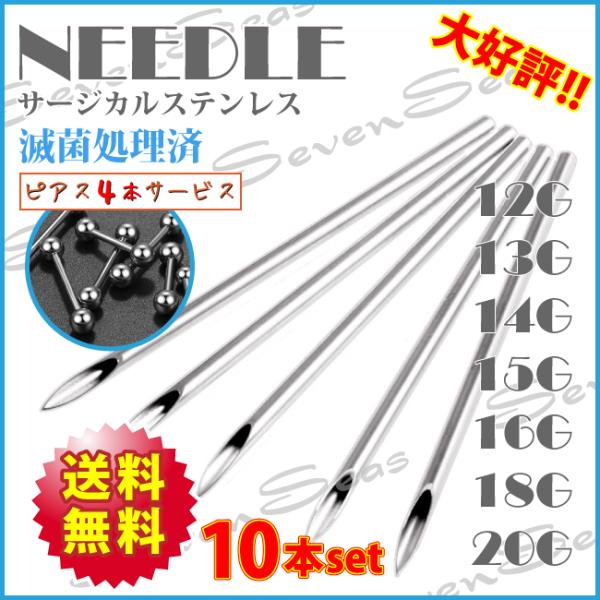 送料無料 激安10本セット ピアス4個プレゼント中 ニードル 18G 16G 14G 12G 18ゲージ 16ゲージ 14ゲージ 12ゲージ サージカルステンレス316L 手芸などに