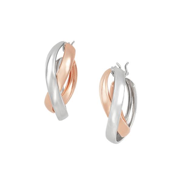 フープピアス K10ホワイトゴールド K10ピンクゴールドピアス ツーカラー 2色 キャッチレス 人気 エレガント
