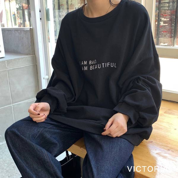 ロンT レディース 長袖 ゆったり カットソー ロゴ トップス オーバーサイズ ビッグシルエット【メール便】 [M便 1/1] 22F35211