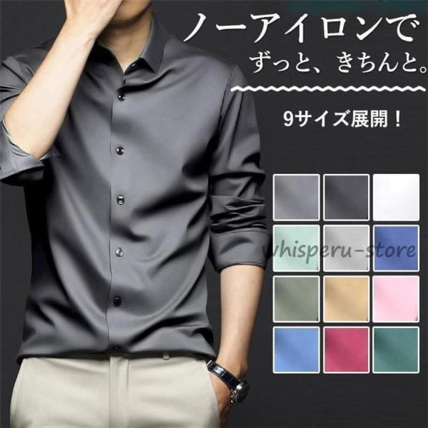 ワイシャツ メンズ 長袖 形態安定 標準体 スリム ノーアイロン ビジネスシャツ サテンシャツ ノーマルモデル レギュラー カッターシャツ おしゃれ カジュアル