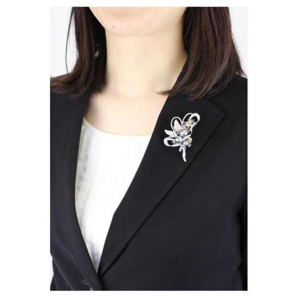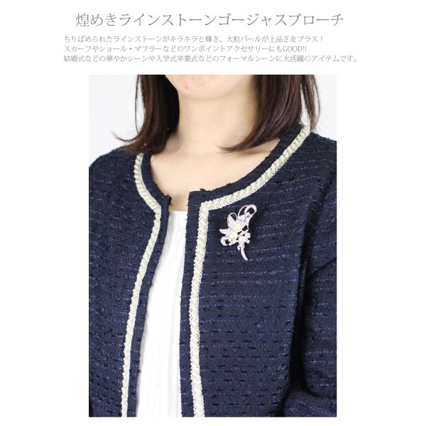 【ゆうパケット送料無料】ブローチ/エレガント リボン ラインストーン パール br20☆グレー/ゴールド/シルバー 卒園式 セレモニー 卒業式 入学式