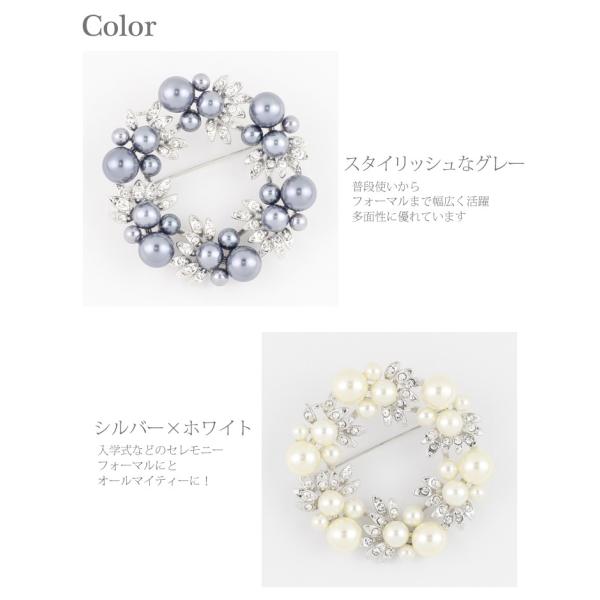 【ゆうパケット送料無料】ブローチ/華やかさ 上品 パール ラウンド サークル型 br49☆グレー/シルバー/ゴールド ラインストーン 卒業式 入学式