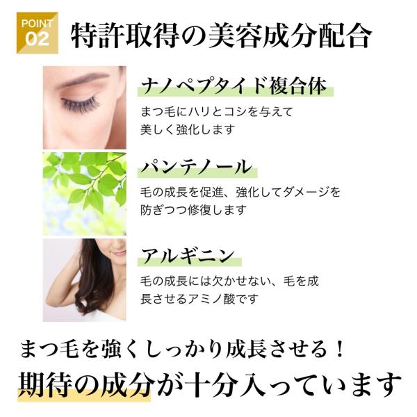 ご使用方法:まつ毛を清潔な状態にし、目に入らないように注意して1日1回ご使用ください。