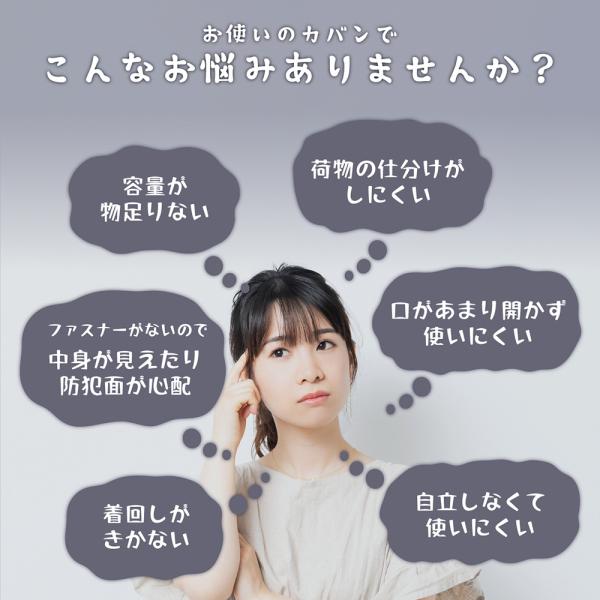 中身の飛び出しや防犯対策にぴったりなファスナー付き!