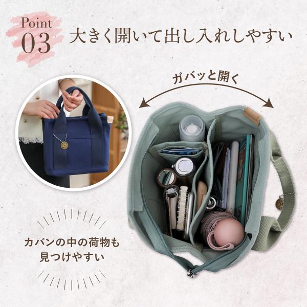 ガバッと開く仕様で鞄の中の荷物を探しやすいです◎