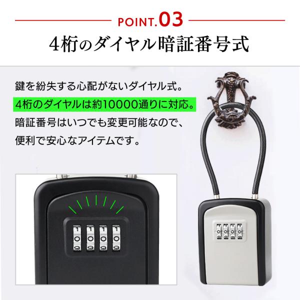 キーボックス ダイヤル式 屋外 壁掛け 玄関 鍵収納 大容量 ホームセンター ワイヤー 南京錠 防水 セキュリティボックス ブラック グレー