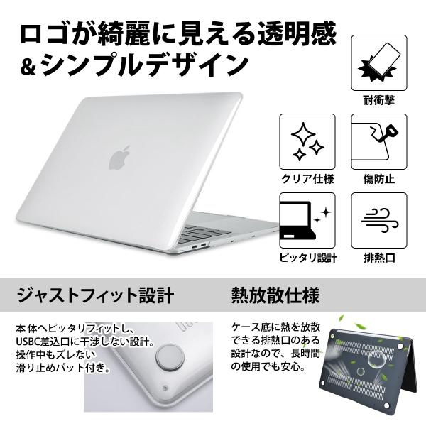 MacBook Air ケース 13.6インチ M4 M3 M2 MacBookケース パソコンケース 綺麗にマークが見える 透明 ケース キーボードフィルム 付き A3240 A3113 A2681