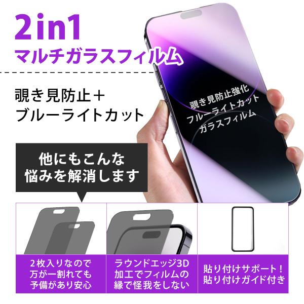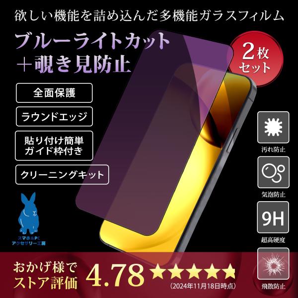 2枚セット iPhoneフィルム 覗き見防止 + ブルーライトカットiPhone17ProMax 17Pro 17Air 1716 16e 16Pro 16ProMax 気泡レス ガラスフィルム