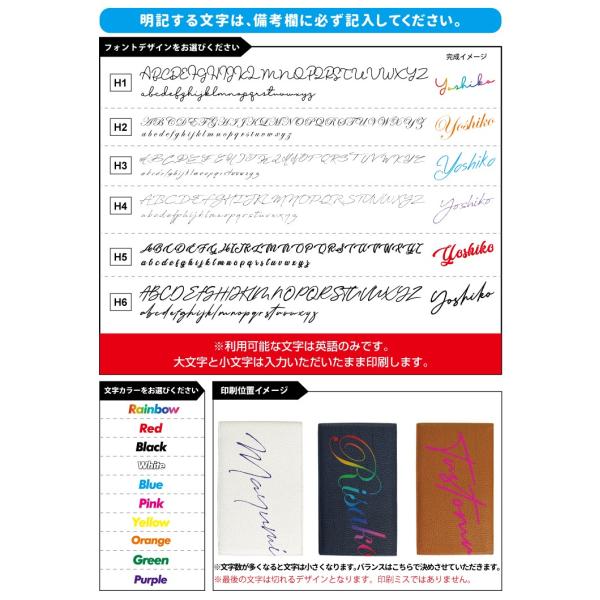 ※名入れする英語は必ず備考欄にお書き下さい。(大文字と小文字もそのままプリントするのでお間違いないようお願いします。)