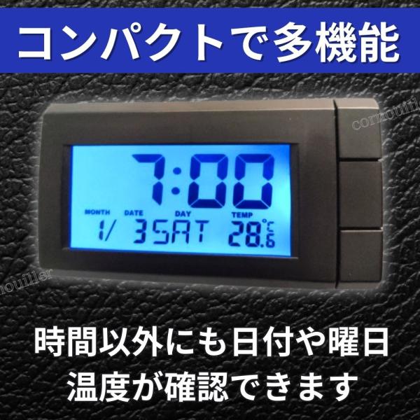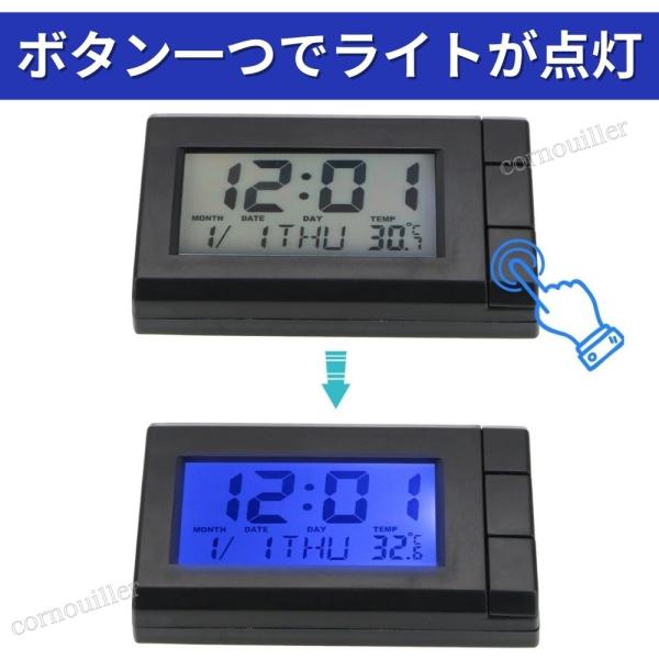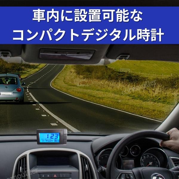 車 時計 車用 デジタル ウォッチ ライト 点灯 ブルー 車載 小型 コンパクト 電池交換可能 車用時計 車載時計 デジタル時計 青い光 見やすい時計