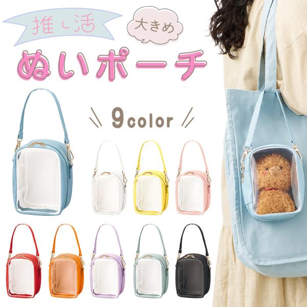 ぬいポーチ ぬいぐるみ ポーチ 推し活 ショルダー クリア 窓 付き 大きめ 収納 バッグ イン バッグ 斜め掛け 推しカラー トレカ アクスタ ぬい活 可愛い