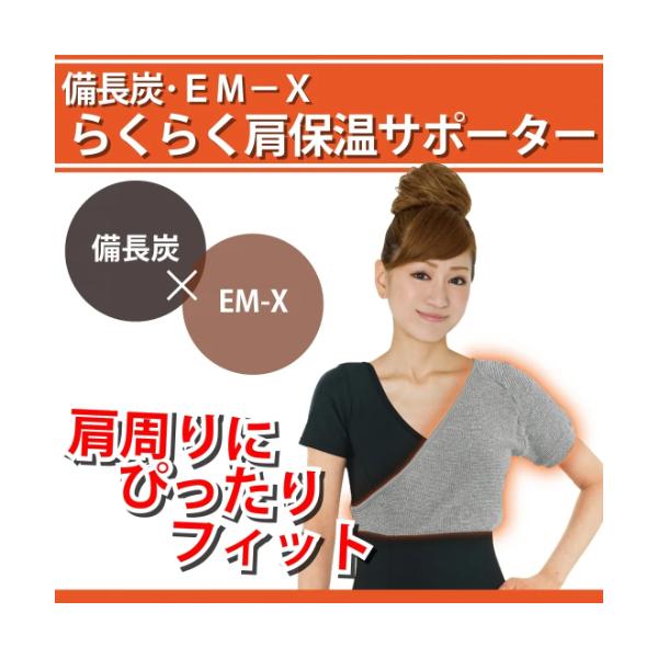 備長炭 EM-X らくらく肩保温サポーター 片方用 備長炭 遠赤外線パワー 健康 免疫力 抗菌性 通気性 湿気 吸収 保湿性 調湿 のびのび構造 Eclea 爆売 爆買