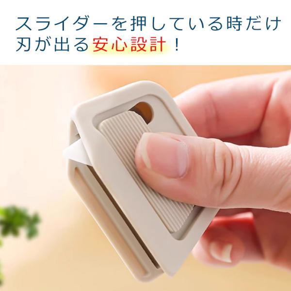 スライダーを押している間だけ刃が出る安心設計です。