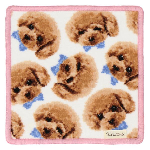 シェニール織ハンカチ トイプードル リボン GUGU WORLD グーグーワールド 犬 イヌ ハンカチ プレゼント ギフト