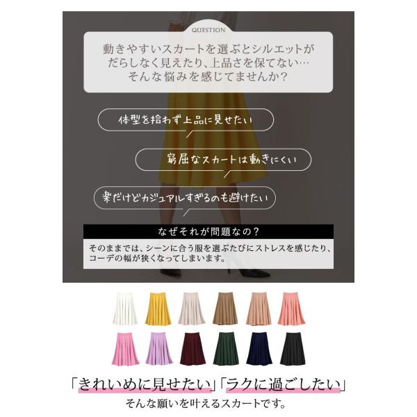 スカート ひざ丈 レディース 秋 冬 秋冬 黒 フレアスカート 膝丈 無地 きれいめ ミモレ ロング サーキュラー ミディアム オフィス ウエストゴム 体型カバー