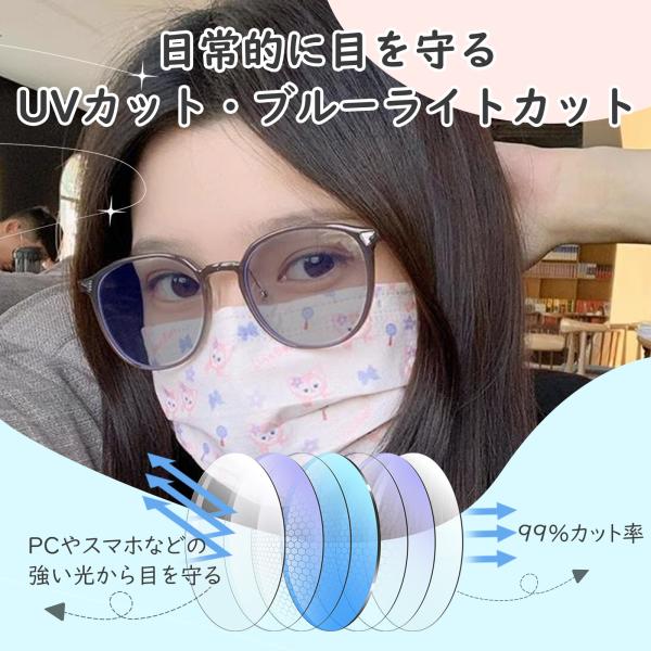 調光レンズ ブルーライトカット サングラス UVカットメガネ 伊達メガネ 度なし変色 パソコン用メガネ 超軽量 紫外線カット ウェリントン おしゃれ レディース