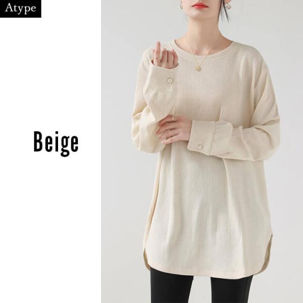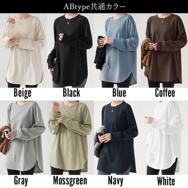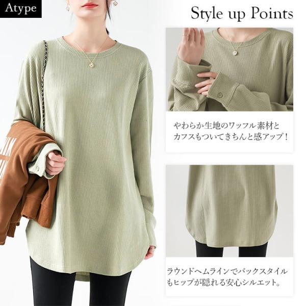 ロングTシャツ レディース 長袖 ワッフル カットソー Tシャツ 凸凹 ゆったり 大きいサイズ 体型カバー 無地 クルーネック カジュアル お尻が隠れる 無地 rt3092