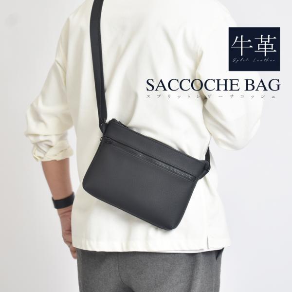 サコッシュ バッグ メンズ レディース 牛革 ショルダーバッグ ポシェット 撥水 レザー 薄型 軽量 横型 斜めがけ スリム 軽い 薄い ミニポシェット