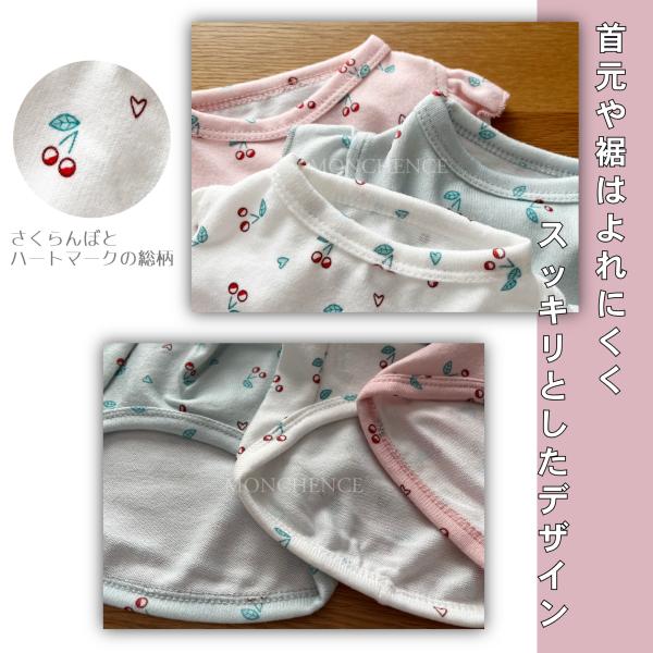 フリル袖がかわいいさくらんぼとハートの総柄ウェアです。