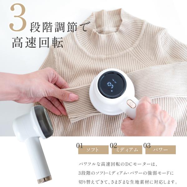 【充電式&LEDディスプレ】USB充電式のコードレスなので、毛玉が気になる時は衣服を着たまま、クローゼットに掛けたまますぐに使うことができます。カットされた毛玉クズはダストカバーに送り込まれ、容量が大きいので頻繁にお手入れしなくて便利です。