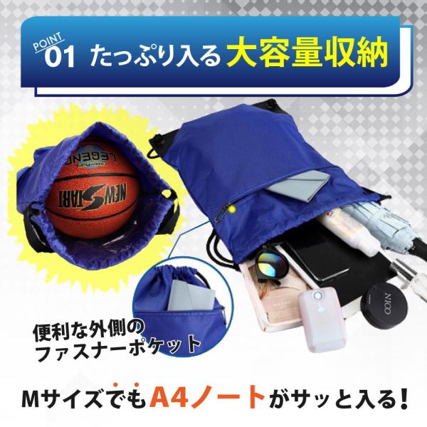 ジムサック や サックパック などとも呼ばれ着替えやシューズを入れるのに便利